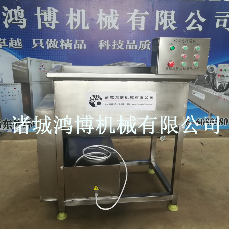 對粒狀、粉狀、泥狀、糊狀、漿狀物皆有很好的適應性和混合效果。對塊狀物有較好的保型性,具有正反轉(zhuǎn)功能,具自動出料功能。攪拌各種腸類的原料如茶腸、肉泥腸、普通腸、松江腸、大眾腸及粉腸、臘腸、南腸等各種餡類制品攪拌之用。水餃美味餡難調(diào),一些大的水餃加工廠每次加工幾十斤的水餃餡,其粘稠度太大,人工攪拌實在難度大而且不均勻,鴻博水餃拌餡機攪拌速度快,不會出現(xiàn)不均勻的情況,食品級材質(zhì),讓您使用起來放心,而且自動出料,省時省力省心,價格不貴技術(shù)雄厚質(zhì)量保證。