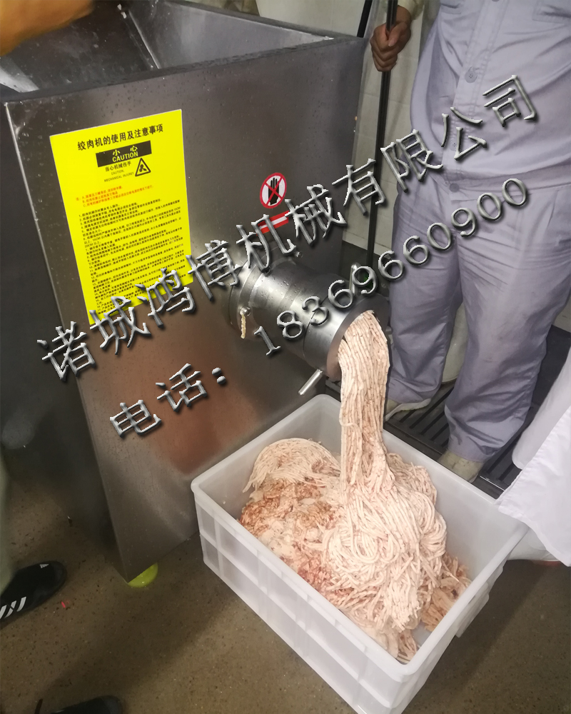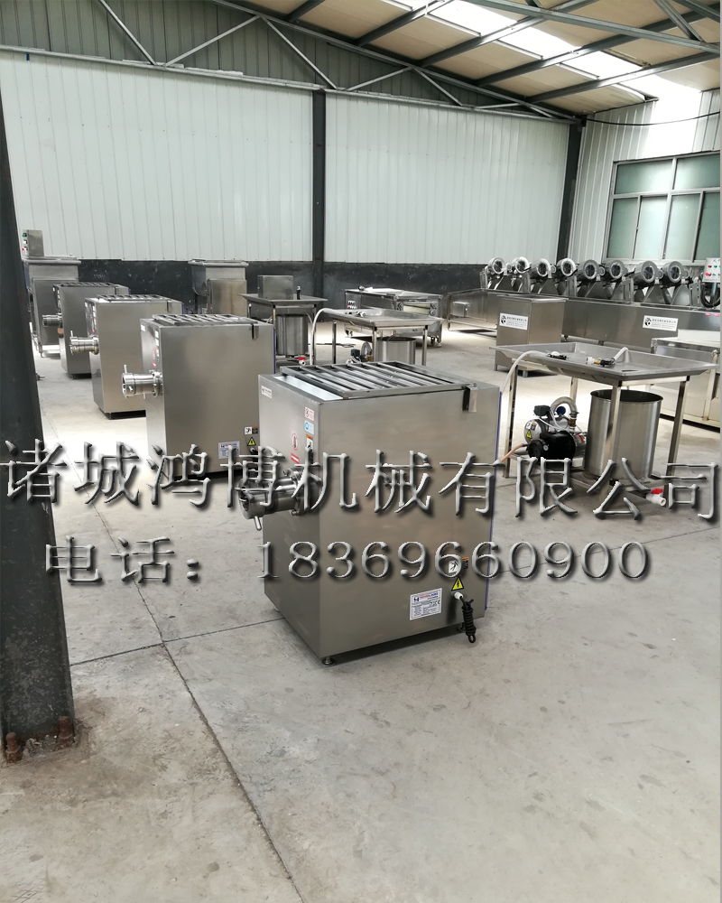 鴻博絞肉機(jī)是肉制品生產(chǎn)行業(yè)中通用性高適用范圍廣的一種肉食加工設(shè)備。它是依靠螺桿將料斗箱中的原料肉推到預(yù)切板處,通過(guò)螺桿的旋轉(zhuǎn)擠壓使孔板與絞刀產(chǎn)生相對(duì)運(yùn)轉(zhuǎn),從而將原料肉切成顆粒形狀,確保了肉餡的均勻性。通過(guò)孔板的不同組合可達(dá)到理想要求的不同肉餡。