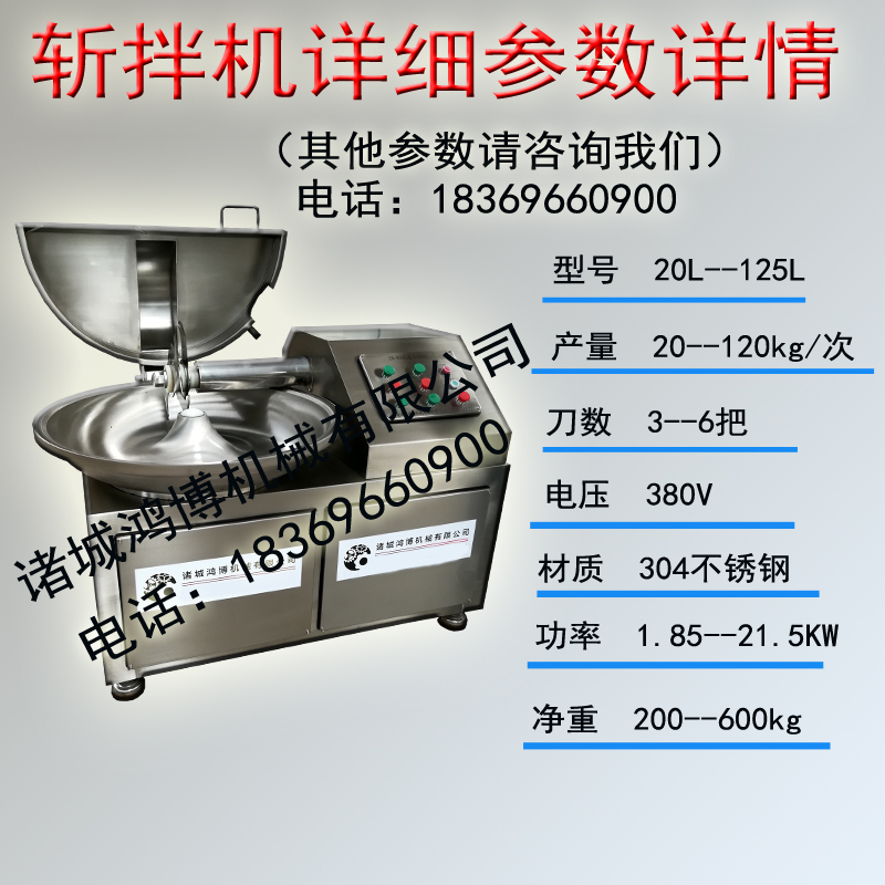 鴻博斬拌機(jī)是利用調(diào)整放置的斬刀將肉及輔料斬成肉餡或肉泥,還可以將作料、肉、水一起攪拌均勻。我公司生產(chǎn)的斬拌機(jī)鍋速、刀速、斬刀與轉(zhuǎn)鍋的間達(dá)到合理的組合,使斬切產(chǎn)品細(xì)度好,升溫小,斬拌時間短,提高了肉制品的乳化效果、彈性及細(xì)膩度。我公司斬拌機(jī)的型號齊全,安全可靠,操作簡單,適合不同用戶的需求??捎糜隰~類、水果、蔬菜、堅果類的粉碎加工攪拌。